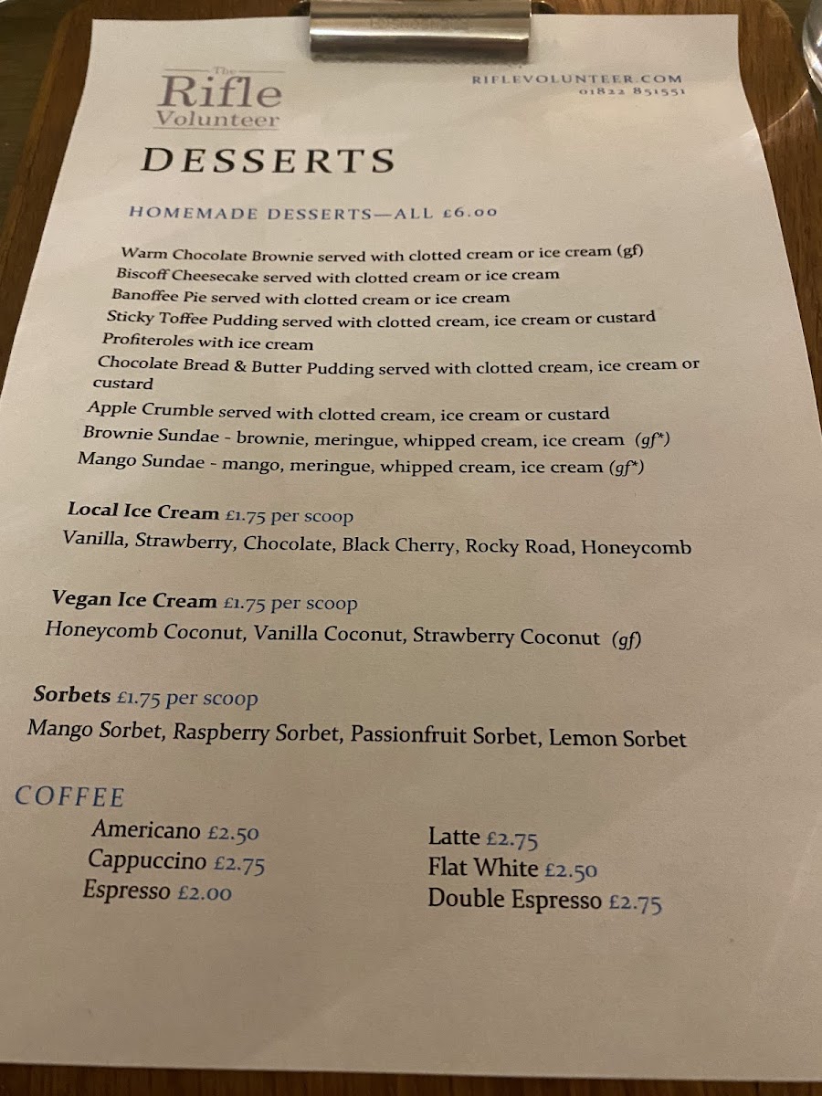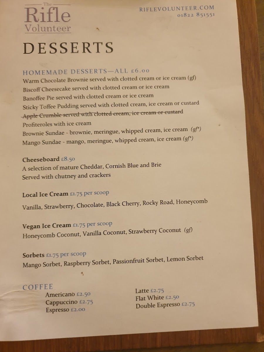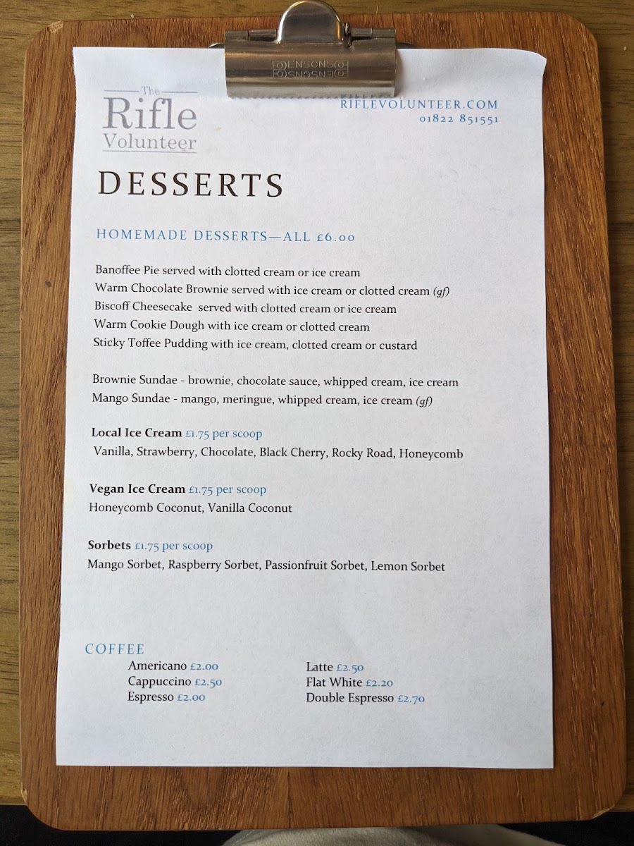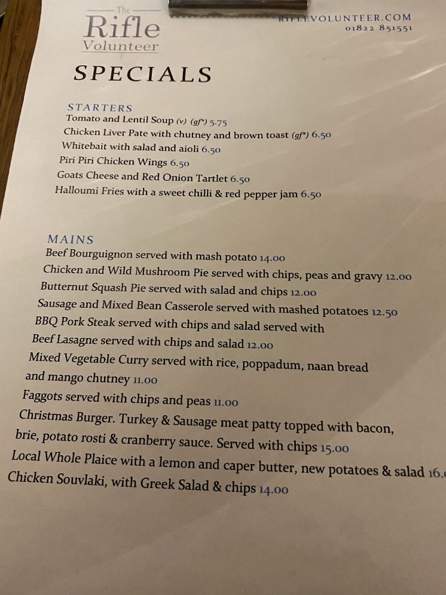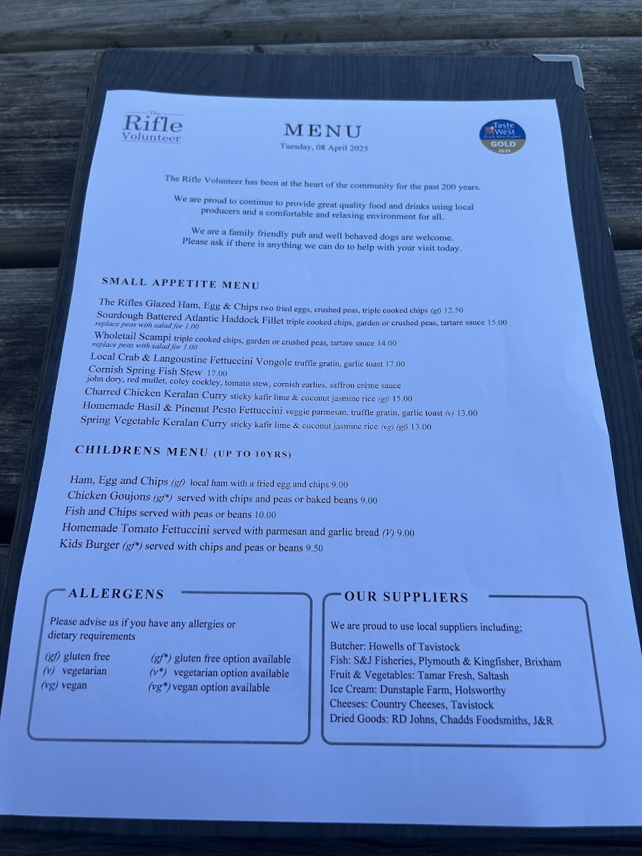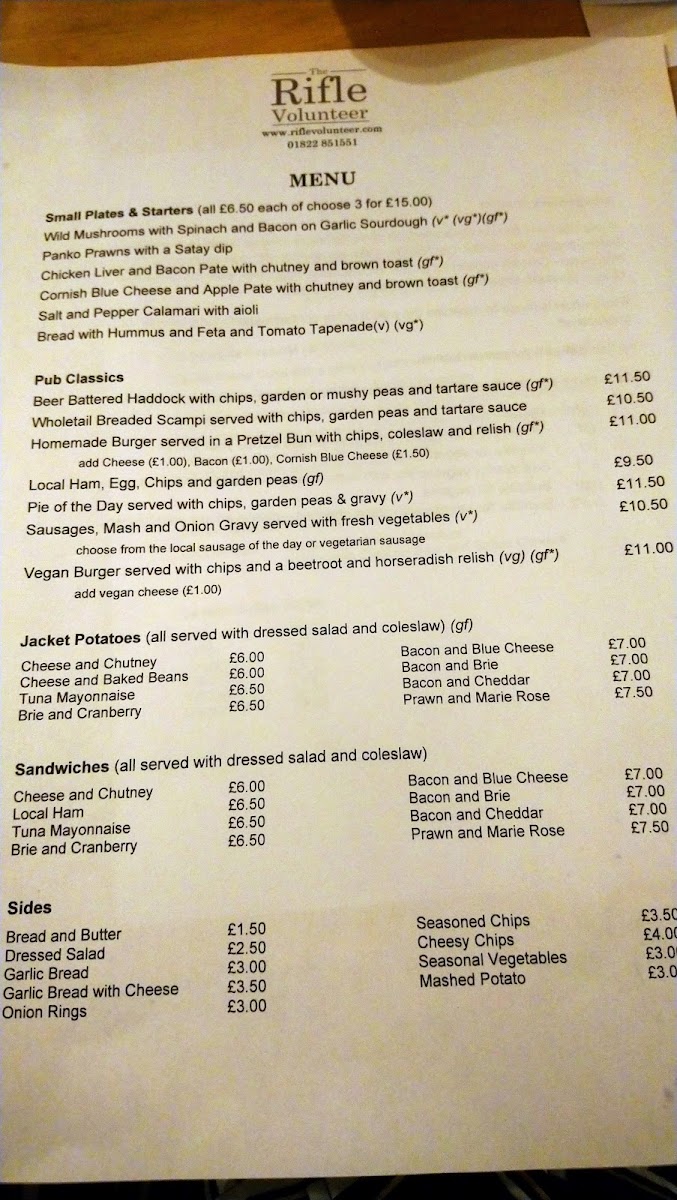 Review of Rifle Volunteer Menu - St Ann’s Chapel, Gunnislake PL18 9HL, United Kingdom